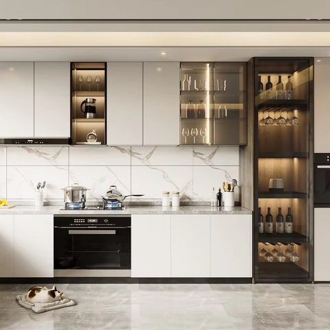 Luxury Full Kitchen Cabinets Modular Kitchen Cabinets with 3 Meters Extendable Dining Table Drawer Slide Accessory & Basket